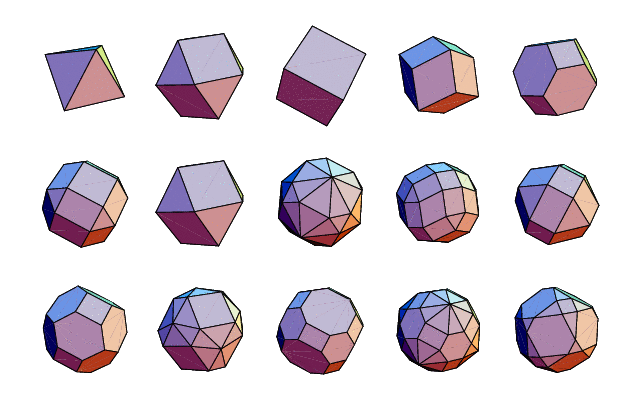the first few polyhedron from the basic sphere center series